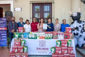 La presidenta municipal, Maestra Anabel Guerrero, en nombre del Gobierno de Xalisco, hizo entrega de 321 litros de leche al