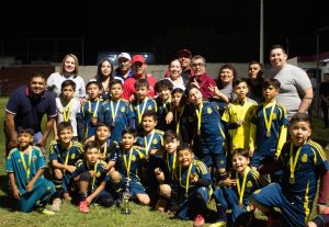 La presidenta municipal, Maestra Anabel Guerrero, encabezó la premiación de la Final de la Liga Infantil de Fútbol, realizada en