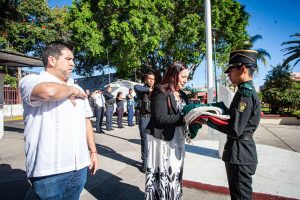En conmemoración del Día de la Bandera, la presidenta municipal de Xalisco, Maestra Anabel Guerrero, encabezó la ceremonia de honores