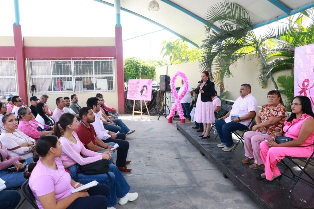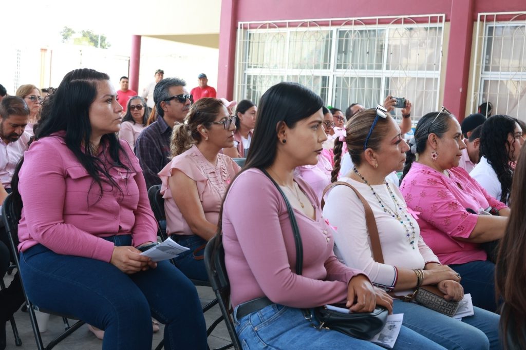 La presidenta municipal, Maestra Anabel Guerrero, destacó la importancia de fomentar la cultura del autoexamen y las revisiones médicas periódicas como herramientas clave para la detección temprana del cáncer de mama.