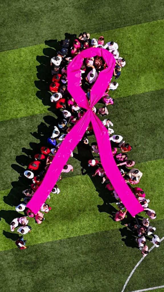 Durante el evento se ofrecieron pláticas informativas y se realizó la formación de un moño rosa humano, símbolo de unión y esperanza en esta lucha.