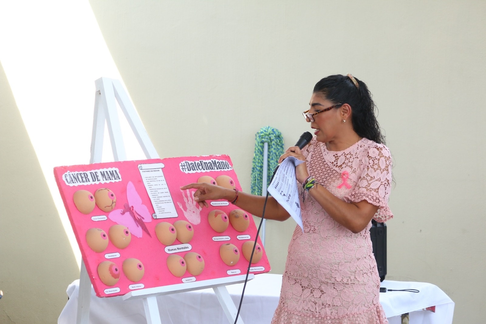 La presidenta municipal, Maestra Anabel Guerrero, destacó la importancia de fomentar la cultura del autoexamen y las revisiones médicas periódicas como herramientas clave para la detección temprana del cáncer de mama.