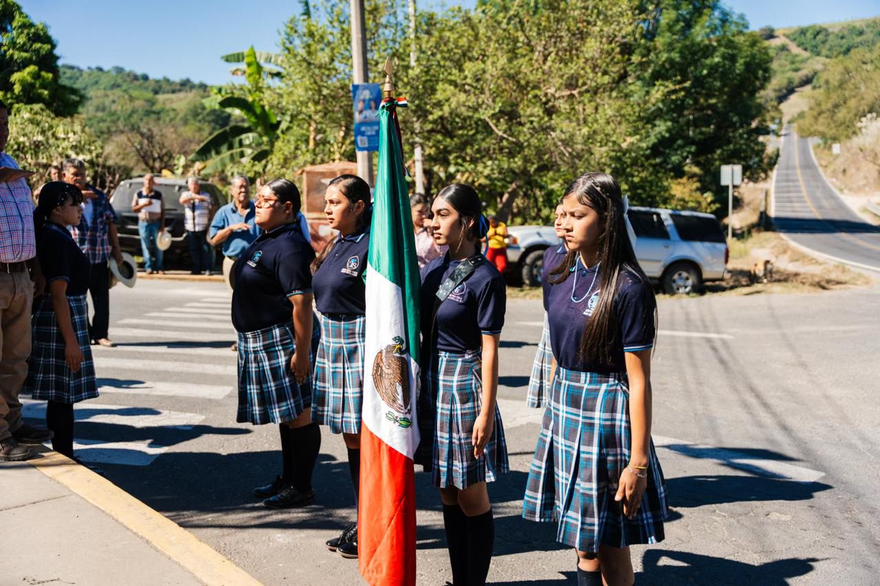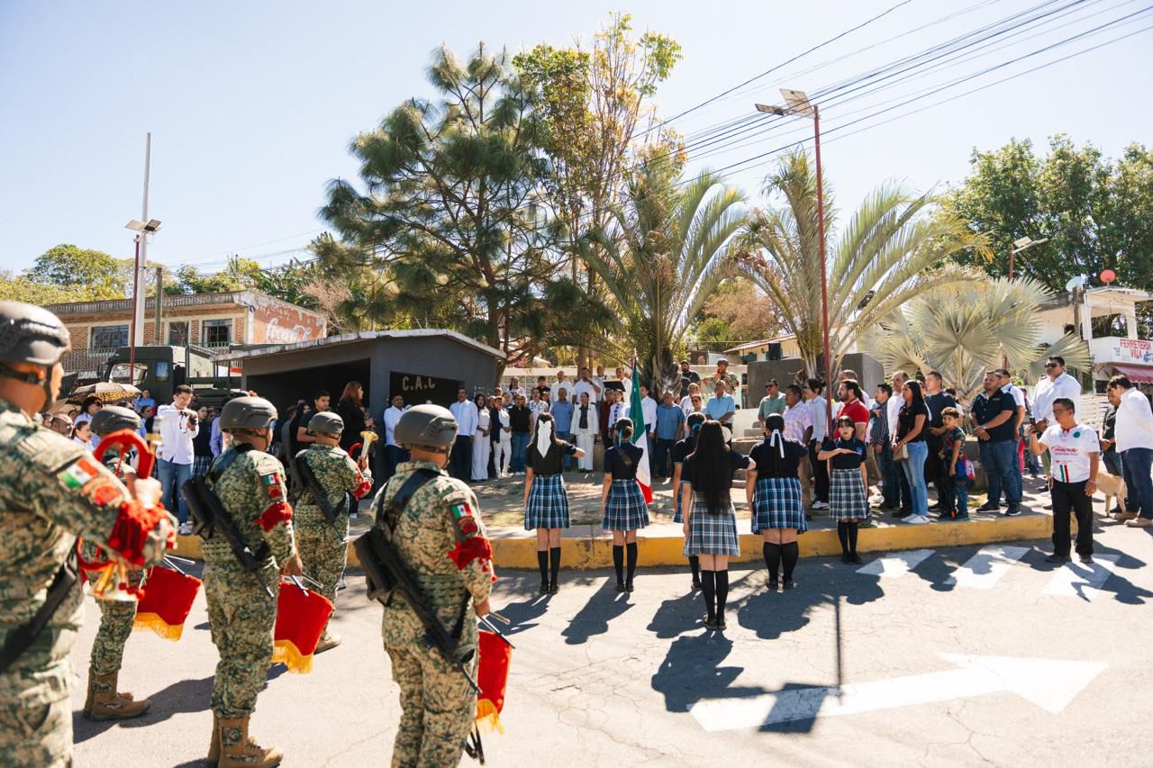 En este acto cívico se contó con la participación del 43/o. Batallón de Infantería, dependiente de la 13/a. Zona Militar, y la escolta de la Telesecundaria Adrián Pulido Robles.