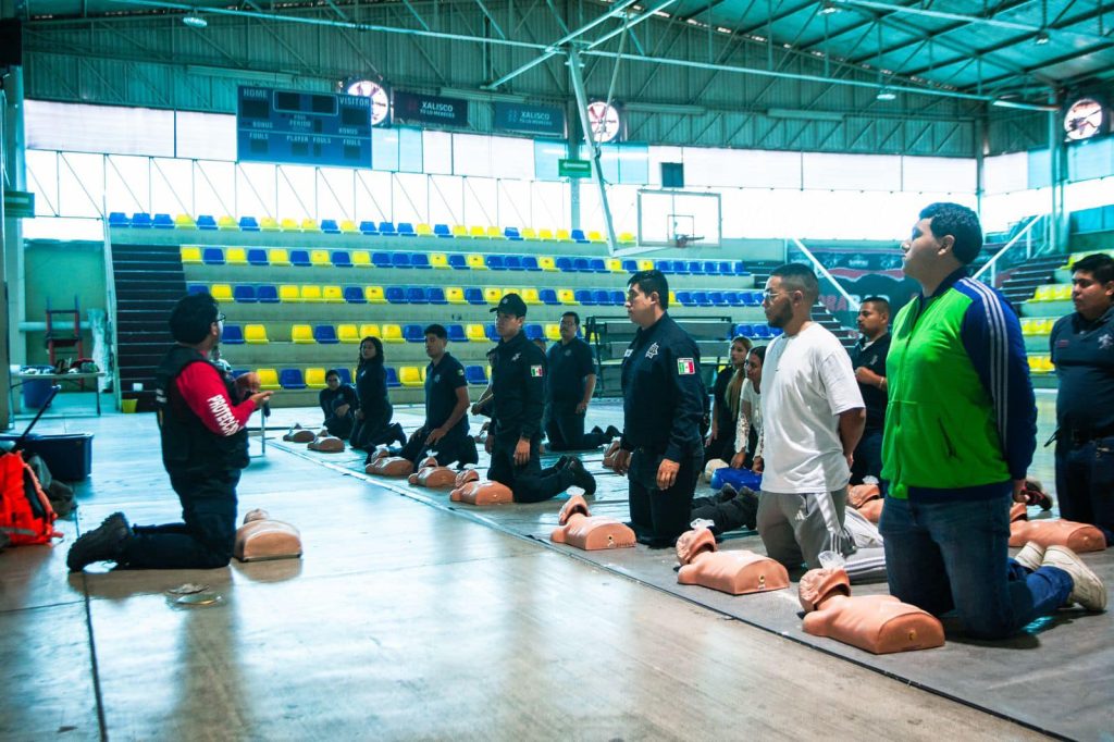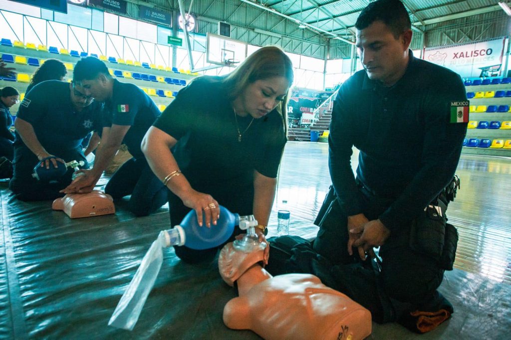 Con el propósito de brindar herramientas y fortalecer sus habilidades y destrezas, elementos de la Dirección de Seguridad Pública, Tránsito y Protección Civil de Xalisco reciben capacitación en materia de primeros auxilios.
