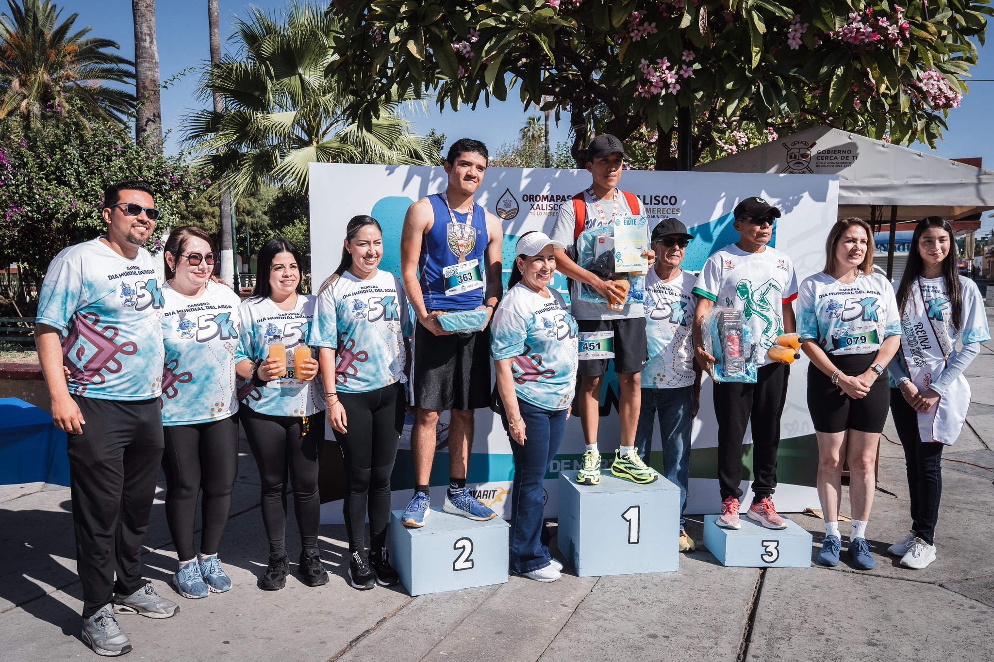 La presidenta municipal, Maestra Anabel Guerrero, acompañada de la síndico Sandra Morales, el presidente del Sistema DIF Xalisco, Rubén Medina, regidoras y el director del Oromapas, encabezaron el banderazo de salida y premiación de los tres primeros lugares de cada categoría.