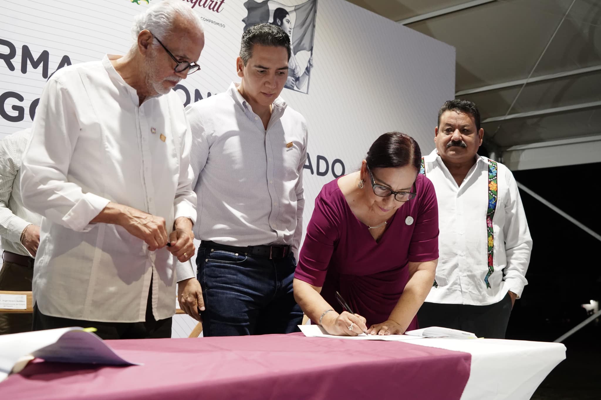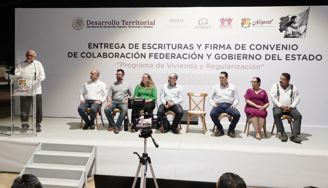 La firma del convenio se celebró en la localidad de San Vicente, Bahía de Banderas, con la presencia del gobernador Miguel Ángel Navarro Quintero, y los representantes de la Secretaría de Desarrollo Agrario, Territorial y Urbano (SEDATU), el Instituto Nacional del Suelo Sustentable (INSUS), la Comisión Nacional de Vivienda (CONAVI) y el Instituto del Fondo Nacional de la Vivienda para los Trabajadores (INFONAVIT).
