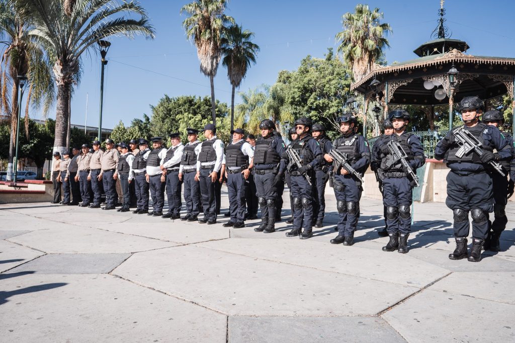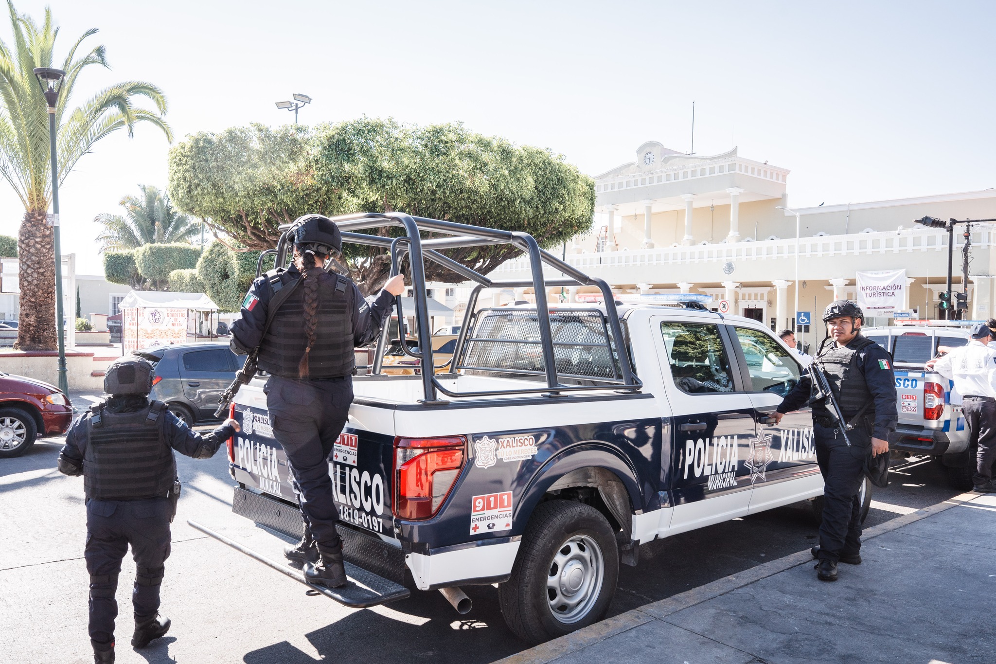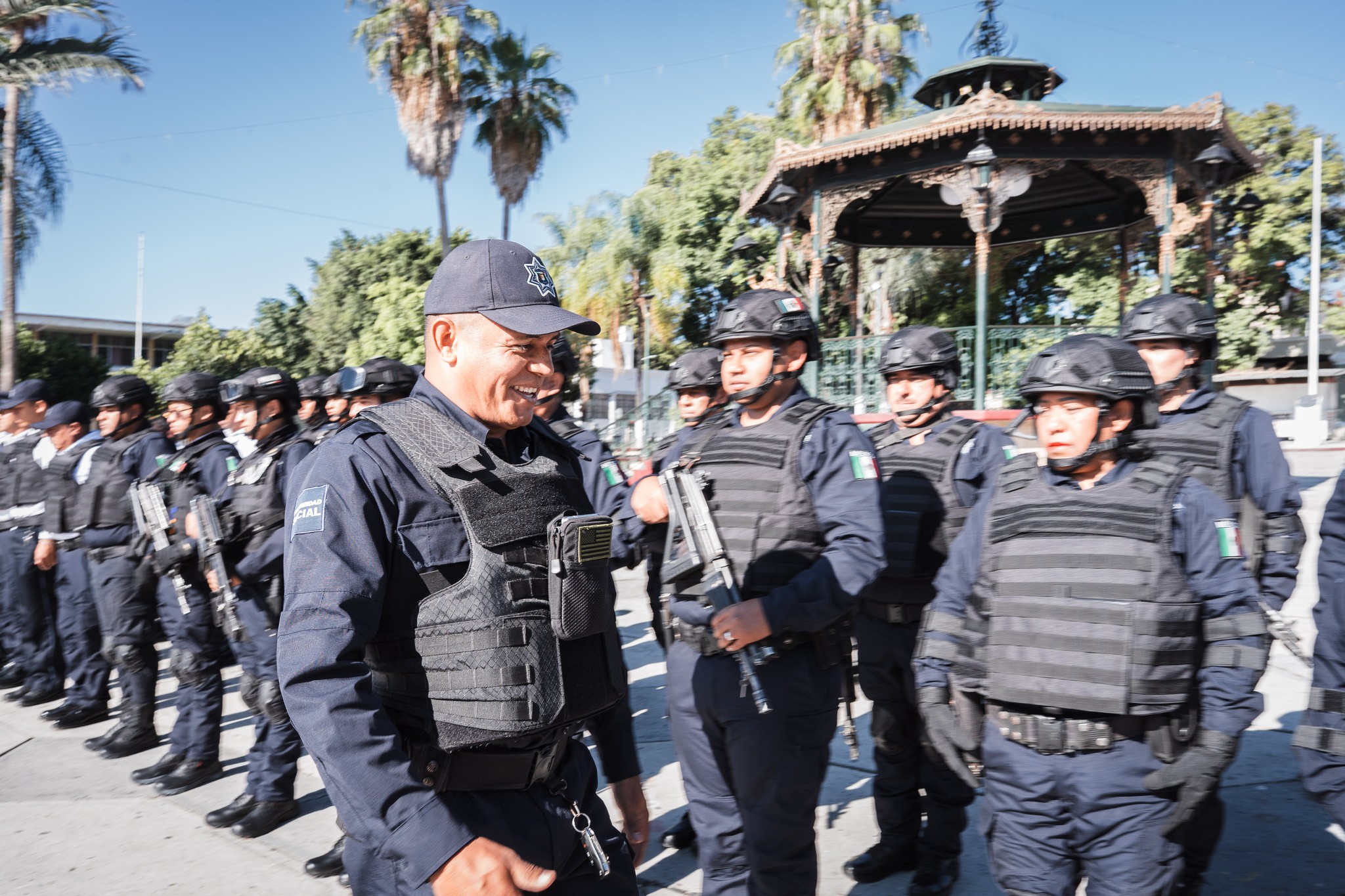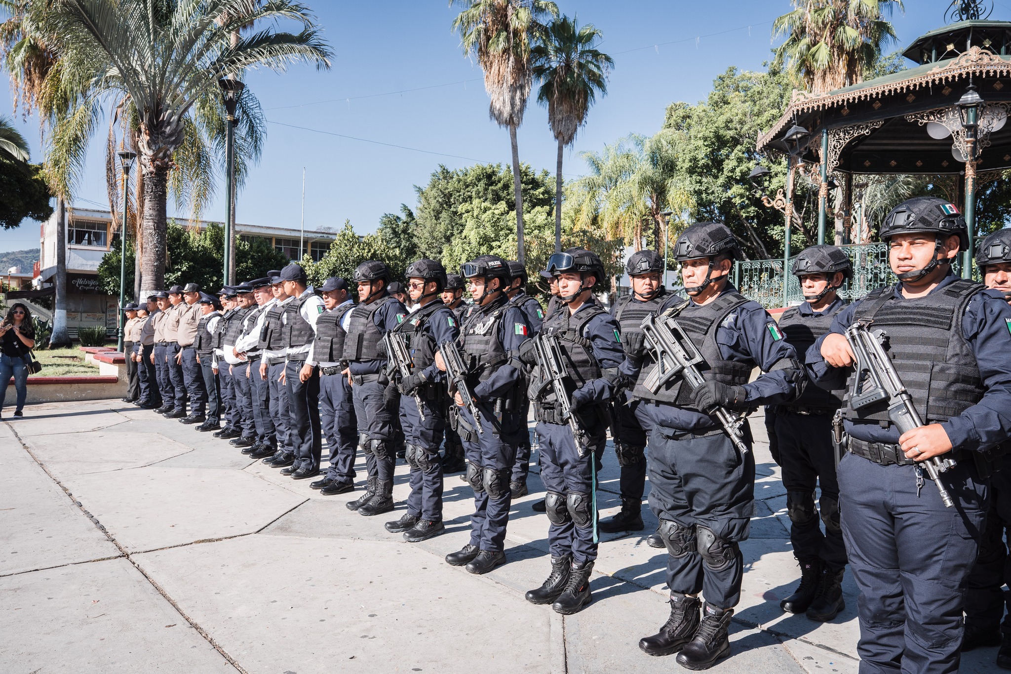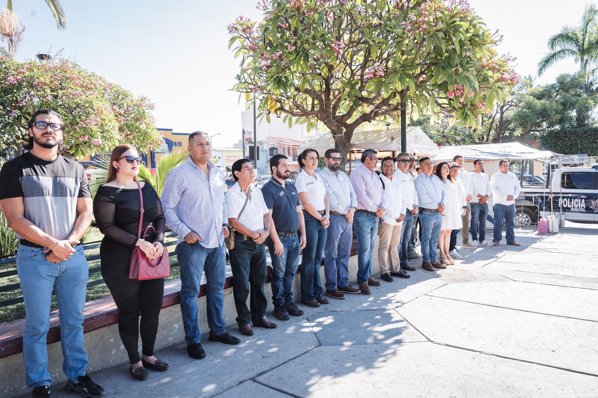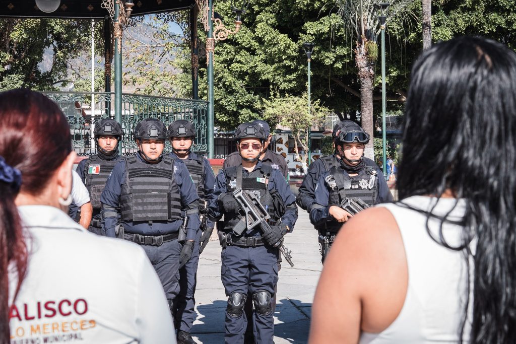 Durante el pase de lista a los elementos de la Dirección de Seguridad Pública, Tránsito y Protección Civil, realizado en la plaza Benito Juárez, la presidenta municipal, la Maestra Anabel Guerrero, reconoció la labor de cada integrante que, con dedicación, contribuye a mantener la tranquilidad de las familias de Xalisco.