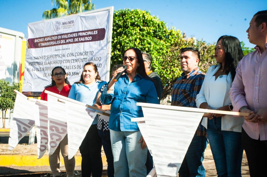 La presidenta municipal de Xalisco, Maestra Anabel Guerrero, dio inicio al Programa de Bacheo Asfáltico, que se desarrollará en diversas calles y avenidas de la ciudad.