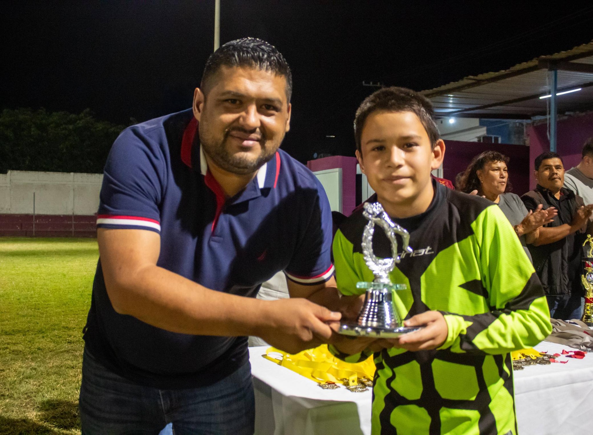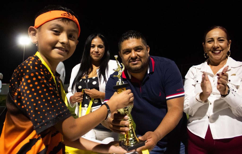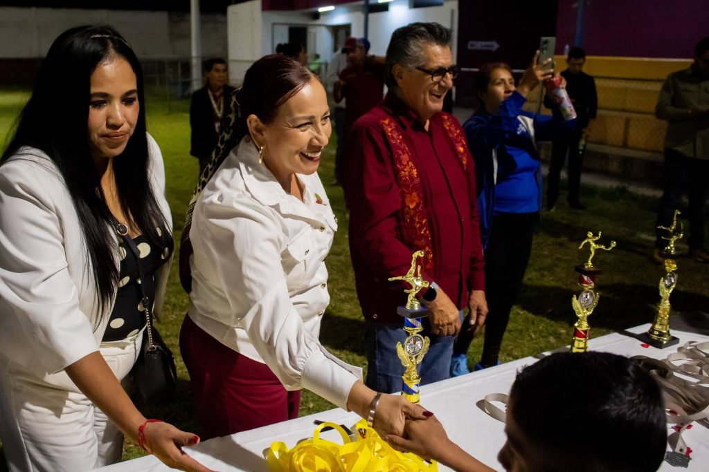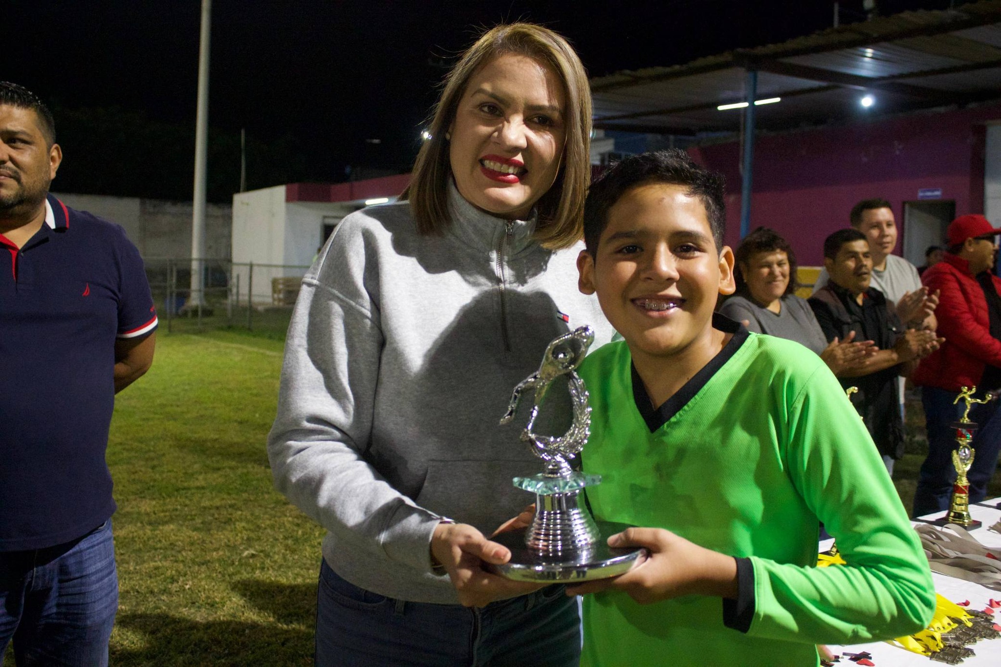 La presidenta municipal, Maestra Anabel Guerrero, encabezó la premiación de la Final de la Liga Infantil de Fútbol, realizada en la cancha de Landereñas.