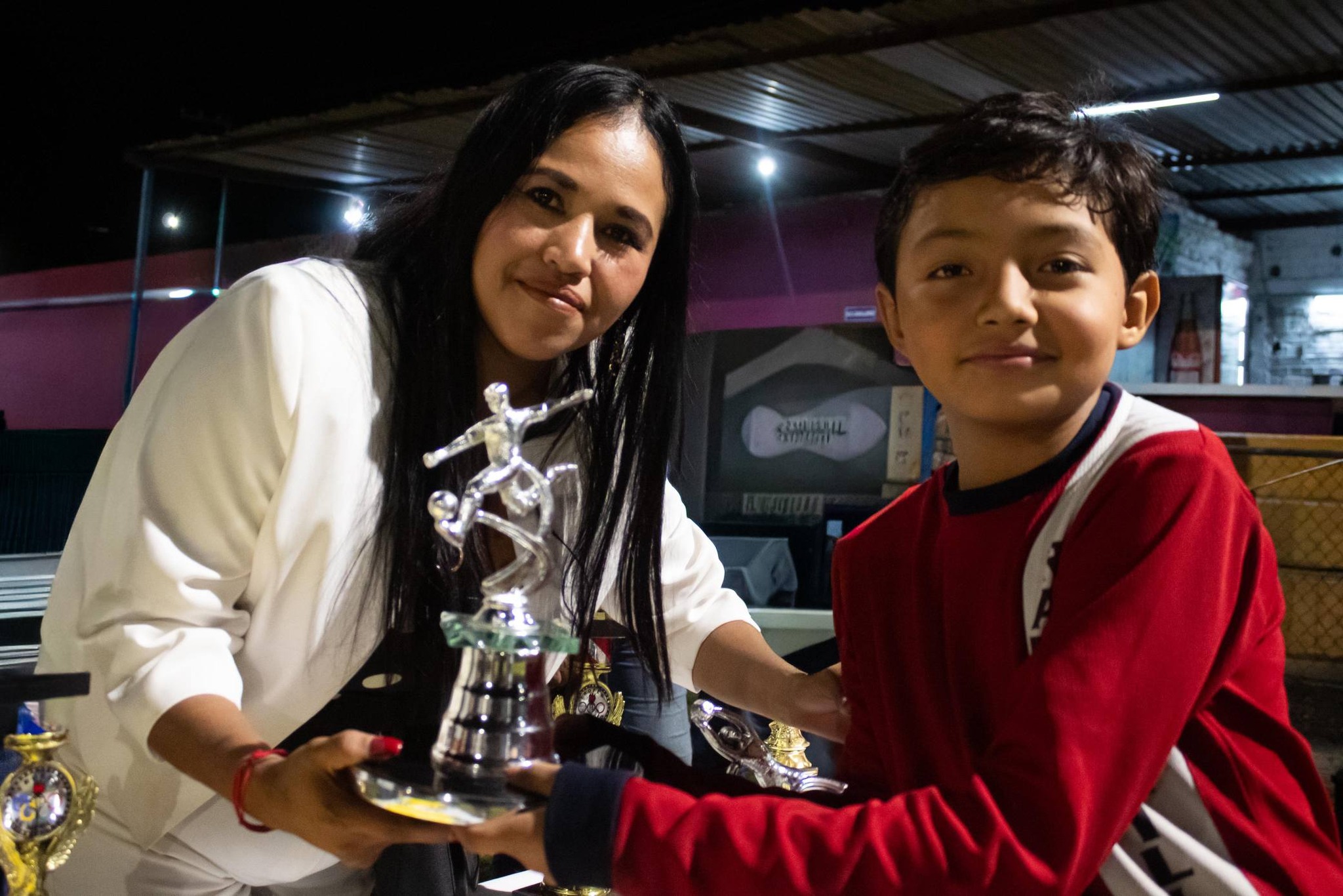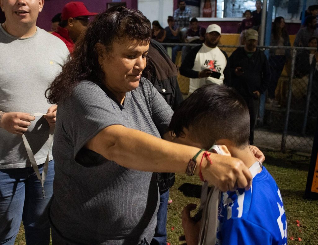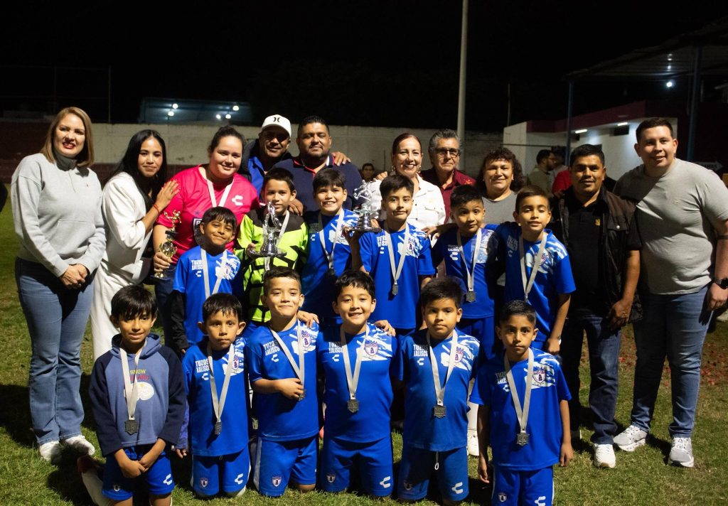 La presidenta municipal, Maestra Anabel Guerrero, encabezó la premiación de la Final de la Liga Infantil de Fútbol, realizada en la cancha de Landereñas.
