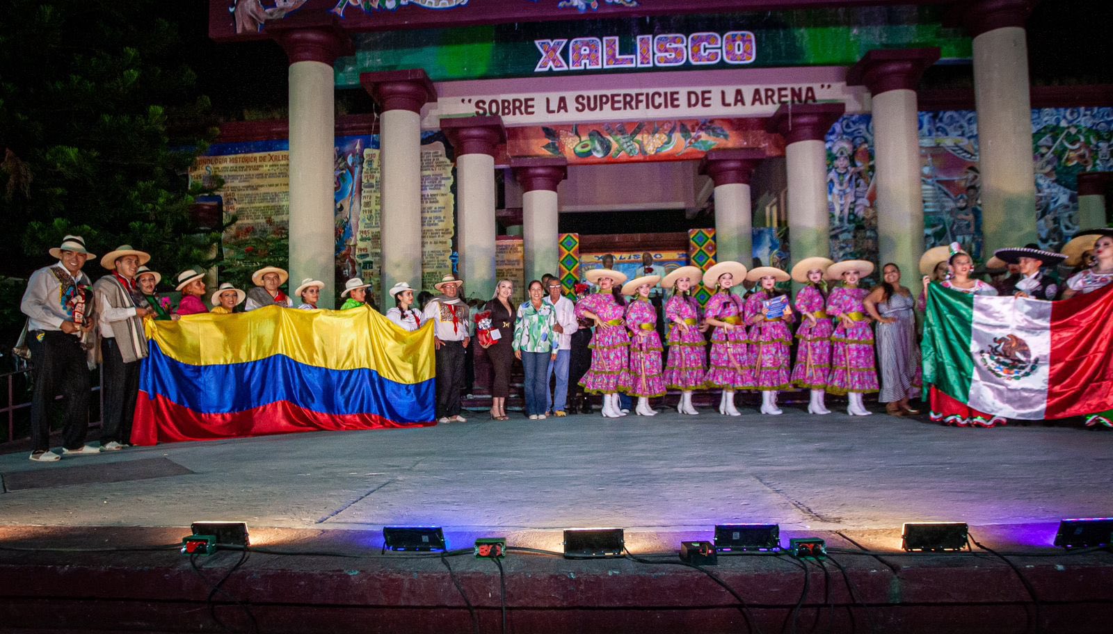 En el marco del XII Aniversario del Festival Folclórico “Unidos por una Tradición”, la presidenta municipal de Xalisco, Maestra Anabel Guerrero, dio una cálida bienvenida a la Agrupación Folclórica Vivencias Raquireñas, de Colombia, país invitado en esta edición del Festival.